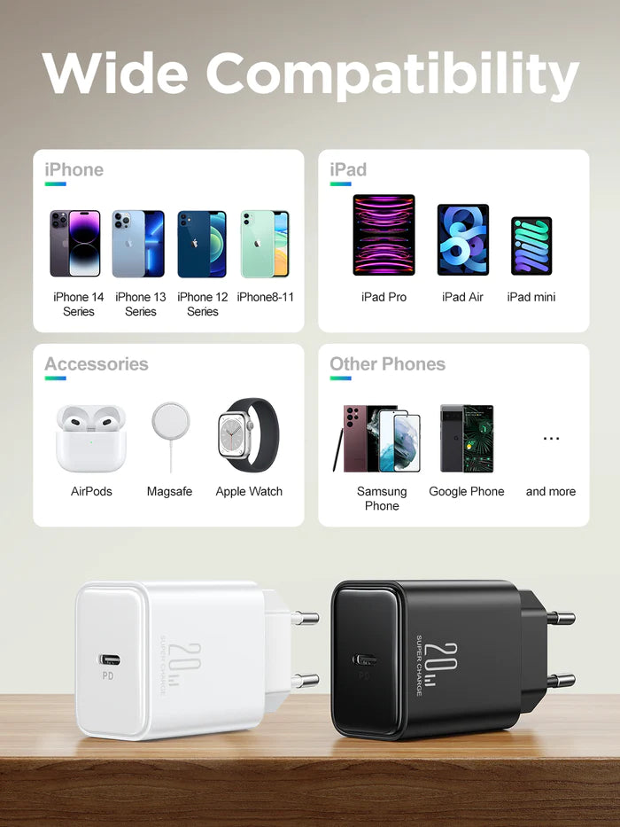 This charger is compatible with a wide range of devices, including smartphones, tablets, and other USB-powered devices. It features a compact and lightweight design, making it perfect for travel and everyday use. The Joyroom JR-TCF06 PD 20W Full Charger also comes with built-in safety features, such as overcharge and short-circuit protection, to ensure the safety of your devices while charging.