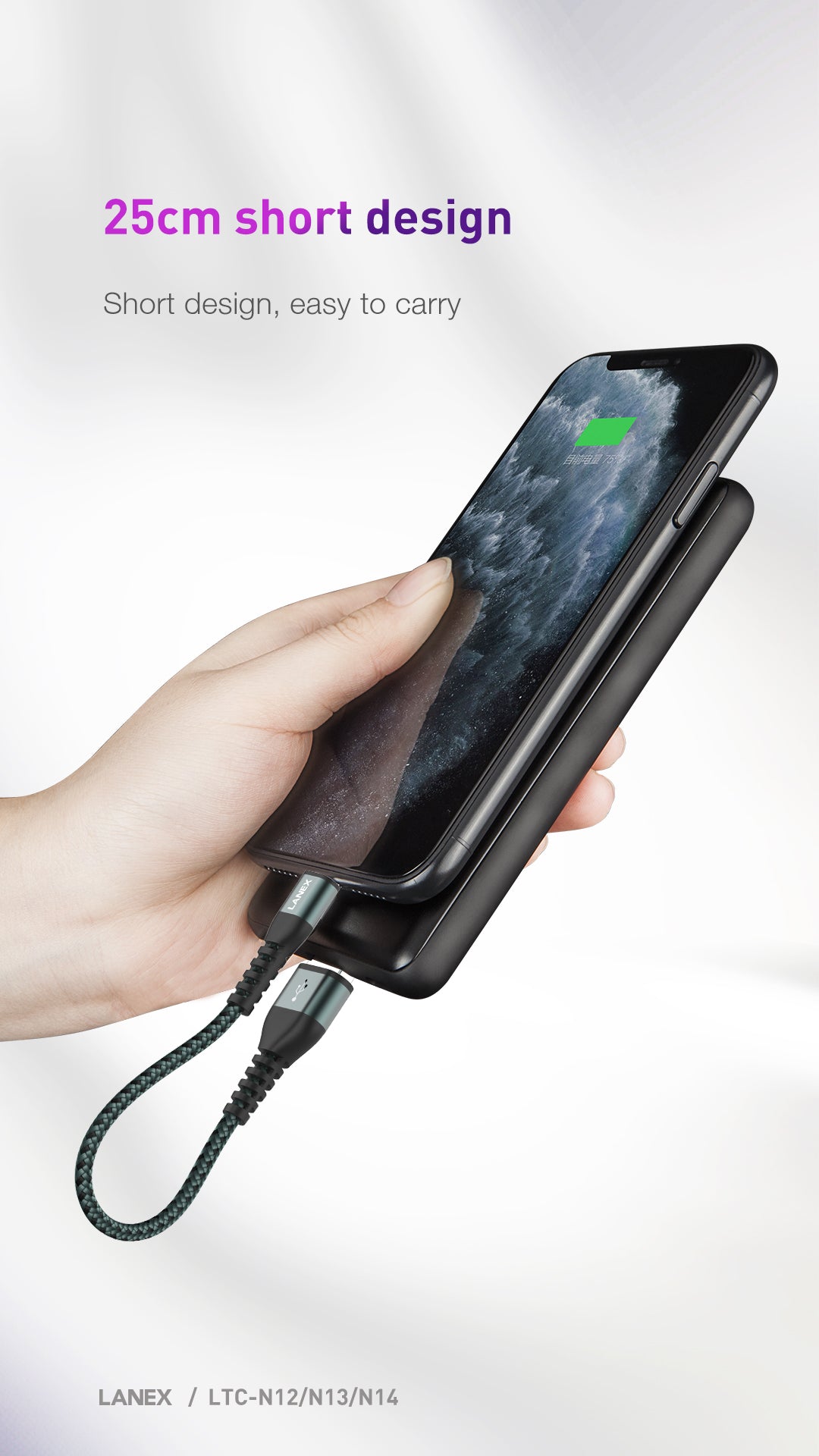 LANEX LTC-N12L USB TO LIGHTNING CABLE 25CM (GREEN)